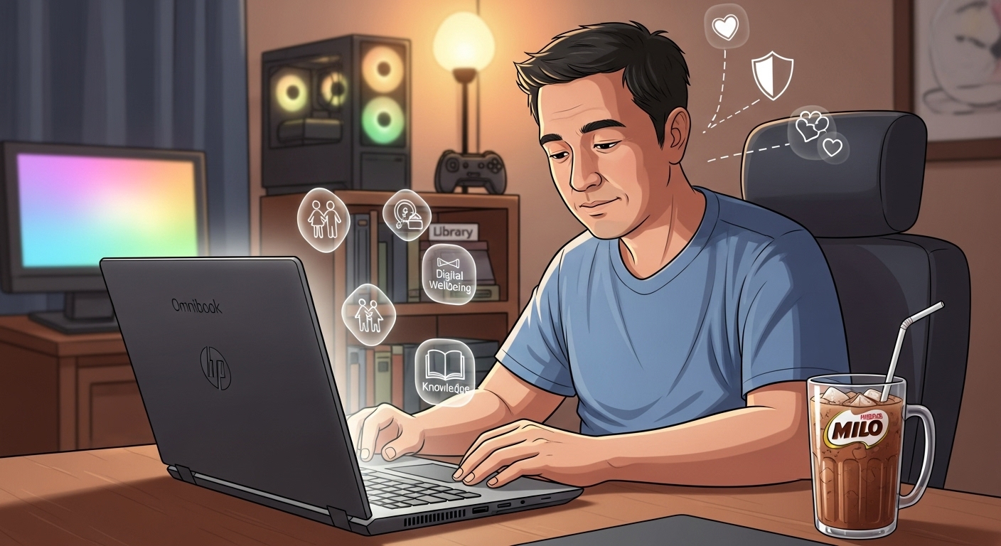 Bapak borek anaknya rintik. They learn from us and they observe more than they listen. If we role-model ourselves by scrolling responsibly, fact-checking news, avoiding toxic comment sections, putting the phone down during meals, and staying away from explicit materials… they are more likely to follow.