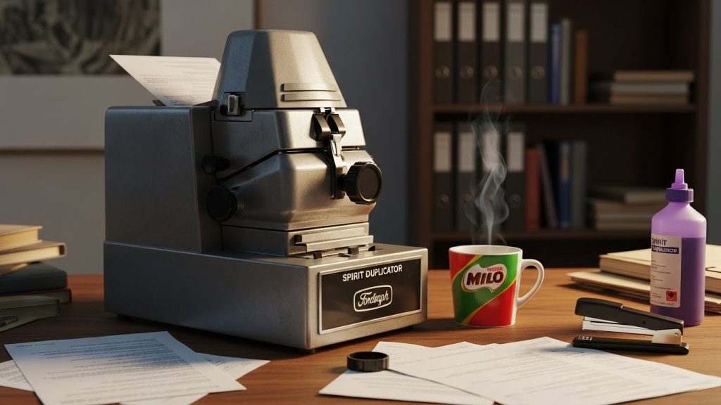 Long before photocopiers and laser printers became everyday tools, schools in Malaysia relied on a spirit duplicator, historically known as a Ditto Machine or Banda Machine. A quick prompt to ChatGPT: